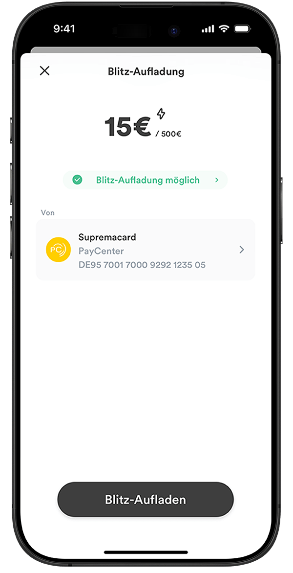 Verbinde dazu dein Bankkonto mit deinem VIMpay Account und nutze die Blitz-Aufladung, um Guthaben in Echtzeit auf deine VIMpay Mastercard zu laden.