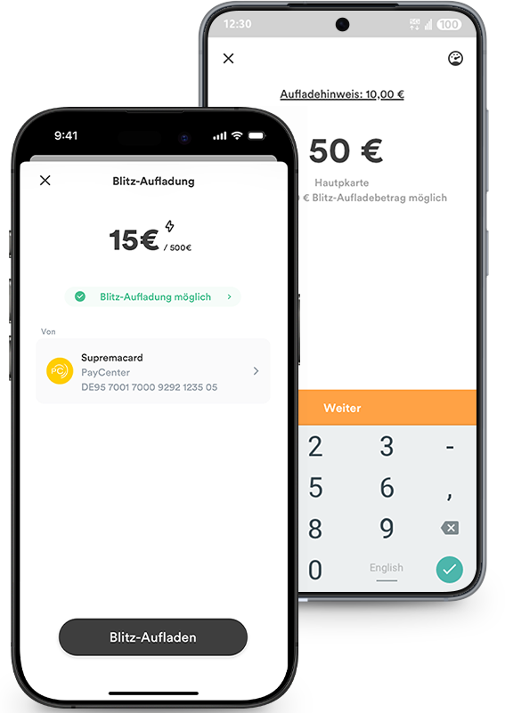 Mit der Blitz-Aufladung und deinem Referenzkonto kannst du deine VIMpay Karte innerhalb weniger Sekunden in Echtzeit aufladen.